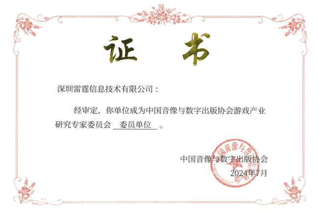 2024年7月25日,,中国音像与数字出版协会游戏产业研究专家委员会(以下简称“中国音数协游戏专委会”)成立大会在上海市召开,,厦门赏金大对决网络技术股份有限公司及其子公司深圳雷霆信息技术有限公司(以下统称“公司”)正式成为中国音数协游戏专委会委员单位。。。。