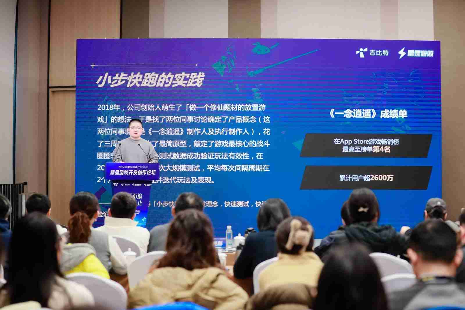 以《一念逍遥》为例,,,2018年公司创始人萌生想做修仙题材的放置游戏的想法,,,于是找了两位同事讨论了一下产品的概念,,这两位现在是项目的制作人,,,花了三周的时间把原型做出来,,,并且确定最初的战斗原型,,以及整个养成的节奏。。。。通过几次版本迭代验证后,,,,也确定后面的内容应该怎么拓展,,最终在一年左右时间这个项目上线了。。当时我们内部有同事看到《⼀念逍遥》上线,,,,认为品质还不够完美,,,,但是整体营收还不错。。。就在想那是不是以后我们都做这样的产品??但实际这是错误的认知,,,,我们内部不是这么看的。。。游戏在那个时间点上市,,,,因为有些市场的考量和营销点的考虑,,,,并不是希望所有项目都是这样。。如果它有更好的契机,,希望它可以做得更大、、、、更好,,希望在内核玩法确定之后,,外围投入可以越大越好,,,所以后面的几个项目是往这个思路上做。。。。