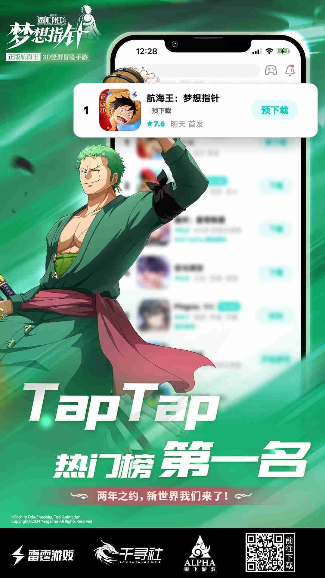 4月1日,,,手游《航海王:::梦想指针》正式公测,,,上线仅2小时不到就登上了App Store免费榜Top1,,,,与TapTap热门榜第一。。。